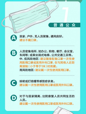 什么時候可以不戴口罩?最新官方指引!國家衛(wèi)健委印發(fā)《公眾科學(xué)戴口罩指引》根據(jù)當前防控形勢和復(fù)工復(fù)產(chǎn)需要,對同人群預(yù)防新冠肺炎口罩選擇和使用技術(shù)指引進行了修訂完善。轉(zhuǎn)發(fā)!一起來看!
